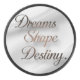 La frase "Dreams Shape Destiny" se representa en un tipo de letra elegante y metálico, que evoca un sentido de fuerza y determinación. El revestimiento metálico añade un toque de elegancia y sofisticación al diseño.
