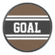 Este divertido diseño de hockey presenta fuertes letras grandes fuertes clásicas dentro de una franja negra realzada con dos rayas blancas contra un fondo marrón oscuro con "GOAL" escrito en frente y en el centro. Hazlo propio: los colores y el texto de este diseño se pueden personalizar.