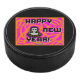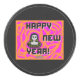 Puedes admirar el dibujo de Año Nuevo de un extraterrestre gris con diseños naranjas y rosas, y el texto dice: "¡Feliz Año Nuevo!" Llamo a este dibujo, "Deseos de Año Nuevo Grises", que se agrega a este disco de hockey para desear a alguien un "Feliz Año Nuevo".