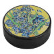 Irises (1890) Vincent van Gogh. Vida positiva y encantadora. Un gran jarrón amarillo con un ramo de iris azules sobre un fondo amarillo. Reproducción de obras famosas de imágenes artísticas de dominio público.