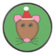 Este impresionante disco de hockey cuenta con un personalizado gracioso de un ratón Navidad con ojos grandes redondos, orejas rosas, una pequeña nariz rosada y pequeños y lindos bigotes. El ratón lleva puesto un sombrero de Santa Claus rojo y blanco listo para Navidades.