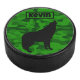 Disco De Hockey Monograma de silueta de lobo negro verde moderno |
