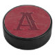 Disco De Hockey Monograma inicial de textura de cuero rojo rústico