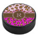Disco De Hockey Monograma marrón rosado impreso en leopardo