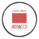 The Moroccan Flag is red with a green pentagram in the center. It shows here with the word MOROCCO underneath in the colors of the flag. A spot for your names gives you the ability to create something personalized. If you prefer to create a gift of a hockey puck for fun and laughs, just add someone else's name.