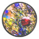 Árbol de Navidad y bola de ornamento rojo cubierta de nieve fresca. Luz colorida alrededor. Humor alegre y alegre. Feliz Navidad Y Feliz Año Nuevo. Saludos de temporada. Impresiones y regalos para cualquiera por diversión y buen humor. Productos y souvenirs de tipo redondo.