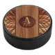 Un magnífico diseño con una banda central de madera clara rodeada de un patrón triangular redondeado en madera tallada y artesanal con contrastes de madera. En el centro, el monograma se muestra en círculo con magníficas letras entrelazadas como grabadas en la madera. Accesorio muy refinado, este disco le dará un toque decorativo de moda a su equipo de hockey.
