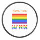 Un disco de hockey personalizado muestra la bandera arcoiris del Orgullo Gay con las palabras ORGULLO GAY debajo en letras arcoiris. En la parte superior se encuentra un lugar para tu nombre, en letras naranjas, para crear un aspecto personalizado. O bien, agrega el nombre de otra persona para un regalo especial de LGBTQ.