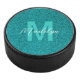 Personalized name modern stylish glitter green pattern hockey puck ,elegant gift for occasions and holidays .