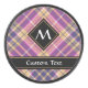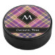 Tartán rosa, amarillo dorado y azul. Patrón sin foco. texto personalizado y monograma.