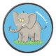Disco De Hockey Un extraño elefante gracioso con un pájaro en el p