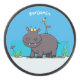 Disco De Hockey Un gracioso hipopótamo con personalizado de pájaro