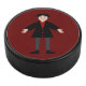 Este impresionante disco de hockey presenta una imagen de arte digital de un estúpido pero lindo Vampiro de Halloween. El vampiro tiene el pelo negro puntiagudo, una camisa roja y una chaqueta negra con los botones en forma de corazón rojo sanguíneo. Tiene una sonrisa espeluznante y largos colmillos blancos. También tiene uñas amarillas, calcetines morados y zapatos negros con hebillas de oro sobre ellas. Sus brazos están abiertos dándote la bienvenida a un abrazo malvado.