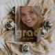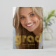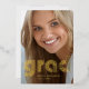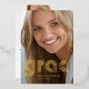 Este anuncio de graduación de 2024, moderno y elegante, presenta dos fotos del graduado, con tipografía retro de disco con hoja de oro que dice "grad" para un look retro actual.