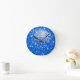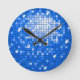 Reloj de pared con una divertida y divertida estética "disco espejo de baldosas" estampado en tonos azules y blancos. Se puede usar como fondo para tu propio texto, imágenes e ideas. Tenga en cuenta que esta es una imagen de arte digital impresa, no brilla ni contiene espejos o purpurinas reales.