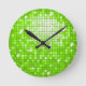 Reloj de pared con un divertido y divertido estilo "disco espejo de baldosas" estampado en tonos verdes y blancos. Puede ser utilizado como fondo para su propio texto, imágenes e ideas. Tenga en cuenta que esta es una imagen de arte digital impresa, no brilla ni contiene espejos reales o purpurinas.