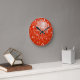 Reloj de pared con un divertido y divertido estilo "disco espejo de baldosas" estampado en tonos rojos y blancos. Puede ser utilizado como fondo para su propio texto, imágenes e ideas. Tenga en cuenta que esta es una imagen de arte digital impresa, no brilla ni contiene espejos reales o purpurinas.