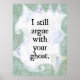 Sigo discutiendo con tu fantasma - texto conmovedor abstracto con los movimientos de fondo verde marino sobre un fondo blanco con lavanda y acentos amarillos.