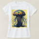 Diseñar una camiseta etérea que capte la gracia y el movimiento de una medusa sobre papel negro pálido. con fondo de color claro para el diseño de camisetas