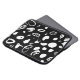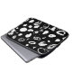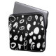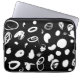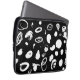 Esta bolsa electrónica muestra sorprendentes dibujos abstractos blancos sobre una superficie negra vigorosa.
