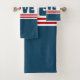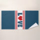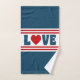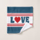 Diseño de amor con forma de corazón en estilo náutico sobre fondo rayado azul, rojo y blanco