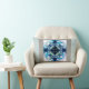 Esta almohada con acentos azules y blancos tiene un diseño original de arte abstracto para un estilo atrevido en una decoración casera contemporánea. Derechos reservados de Ann Powell.