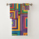 mezcla dinámica de tonos vivos dispuestos en un diseño de rejilla, este arte abstracto combina estética retro con un toque moderno.