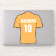 Pegatina de fútbol. Diseño de camisas de fútbol en oro antiguo. Personalizado con tu elección de nombre y número. Pegatina de portátiles. 8 x 8 pulgadas.