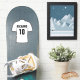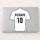 Pegatina de fútbol. Diseño de camisas de fútbol en blanco. Personalizado con tu elección de nombre y número. 8 x 8 pulgadas.