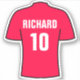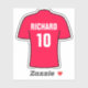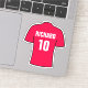 Pegatina de fútbol. Diseño de camisas de fútbol en rojo. Personalizado con tu elección de nombre y número.
