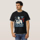 El diseño presenta un gráfico atrevido y moderno de un estetoscopio formando una forma cardíaca en el centro de la camisa, simbolizando el cuidado y la compasión. Encima del gráfico está el texto "Salvando vidas en el diario" en una fuente limpia y sans-serif, mientras que debajo, en cursiva, dice "Orgulloso de ser Médico". Íconos sutiles como una cruz médica, jeringa y línea de latido de corazón acentúan las esquinas para mayor detalle. El diseño utiliza colores tranquilizadores como azul marino, verde azulado y blanco para un aspecto profesional y limpio