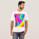Este diseño de camiseta presenta un patrón abstracto audaz y moderno que combina formas geométricas vibrantes con líneas fluidas. El diseño incorpora colores de neón brillantes como azul eléctrico, rosa neón y amarillo soleado, creando un ambiente dinámico y enérgico. Un gradiente sutil y capas texturadas añaden profundidad, dándole a la obra una apariencia futurista pero divertida. Perfecto para aquellos que buscan una mirada elegante y atractiva que combina la estética moderna con un espíritu divertido y juvenil.