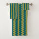 El juego de toallas muestra el diseño de un chevron amarillo-verde sobre un fondo verde oscuro intercambiable.Para consultas de personalización, póngase en contacto con bea@KBMD3signs.com