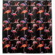 Diseño de la cortina de ducha Flamingo con pájaros coloridos y estrellas en un fondo negro. Trae un poco de color tropical a tu cuarto de baño. Gracias a Creative Fabrica por algunos de los elementos del diseño.
