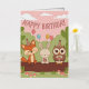 Haz especial el cumpleaños de tu hijo con nuestro lindo y juguetón diseño de temática forestal que incluye a un zorro, un conejito y un búho celebrando en un caprichoso fiesta de bosques. ¡Perfecto para los niños que aman la naturaleza y los animales!