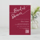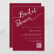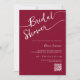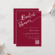 Celebra la futura novia con esta invitación a la ducha de moda con una novia de color burdeos, diseñada con un guión moderno escrito a mano y una tipografía elegante. Esta invitación es una elección audaz pero atemporal y cuenta con ricos tonos rojos, diseño curado y espacio para los detalles esenciales de los eventos. Incluye un código QR conveniente para el registro de regalos o el acceso RSVP. Perfecto para el otoño, el invierno o las duchas de novias formales.