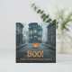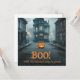 Envíe escalofríos con esta inquietante postal de Halloween que presenta una turbia plaza de la ciudad llena de fantasmas a la medianoche. ¡Ideal para sentir un ambiente espeluznante esta temporada de Halloween!