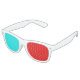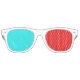 Gafas con lente cian a la derecha, y lente roja a la izquierda, dando la apariencia de anteojos 3D de la vieja escuela.