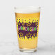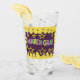Este vaso de agua tiene un diseño animado de una pancarta con las palabras Mardi Gras en los colores del Mardi Gras sobre un fondo amarillo. Perfecto para las celebraciones y fiestas del Mardi Gras.