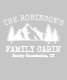 Chica con el nombre de su familia y la cabaña, la cabaña u otro texto deseado. Entre sus instalaciones se incluye una silueta blanca de diseño personalizado con árboles rústicos y montañas.