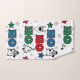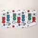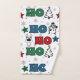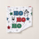 Diseño de Navidades Ho-Ho-Ho con copas de nieve, muñeco de nieve, árbol de Navidad, reno y estrellas de colores decorando fondo blanco