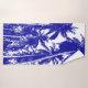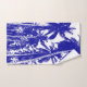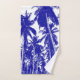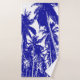 La silueta de palmeras tropicales crea un conjunto de toallas para el cuarto de baño o la playa. Palmeras tropicales con un efecto gráfico azul y blanco