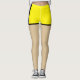 Coloridos pantalones cortos falsos de neón amarillo brillante con cremallera.