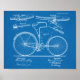 1890 ilustracion de diseño técnico de patentes estadounidenses para bicicletas de época. Bicicleta de accionamiento en cadena con cierre en los manillares y mecanismo de freno. Más impresiones de patentes en nuestra sección "Impresiones de patentes estadounidenses". Posters de publicidad en bicicleta bajo nuestra sección "Anuncios de publicidad en época de vacas"