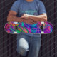 Diseño de patineta trippy con estilo psicodélico