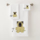 Un juego de toallas de baño, compuesto por un pañuelo, una toalla de mano y una toalla de baño con un diseño de perro matador. Puedes personalizar este juego de toallas de baño con cualquier texto que elijas. Si necesita ayuda para personalizar, póngase en contacto con nosotros a través del enlace de mensajes de esta página. Juego de toallas de baño para perros Bullmastiff