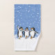 Pingüinos bailarines Diseñan un juego de toallas de baño con color de fondo y texto de personalizable.