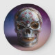 Un delicado arte de la pared del cráneo de porcelana pintada a mano con motivos florales que recuerdan a la antigua cerámica holandesa, entrelazada con formas geométricas inspiradas en la arquitectura islámica, se sitúa en un marco cálido, oscuro y azul que se gradúa hasta los bordes ricos y aterciopelados, evocando un ambiente místico y antiguo, con sutiles acentos dorados y texturas intrincadas que invitan a los espectador a paso más cercano, todo representado en un estilo cinematográfico, de alto contraste con sombras profundas y una iluminación dramática.