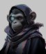 Ilustracion Sci-fi de simios con túnicas oscuras y accesorios futuristas.Niños con capucha de bolsillo delantero y capucha