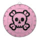 Diseño de tablero de dardos rosados con cráneo y huesos ondulados. Buena idea de regalo para los niños. Se puede cambiar el color.